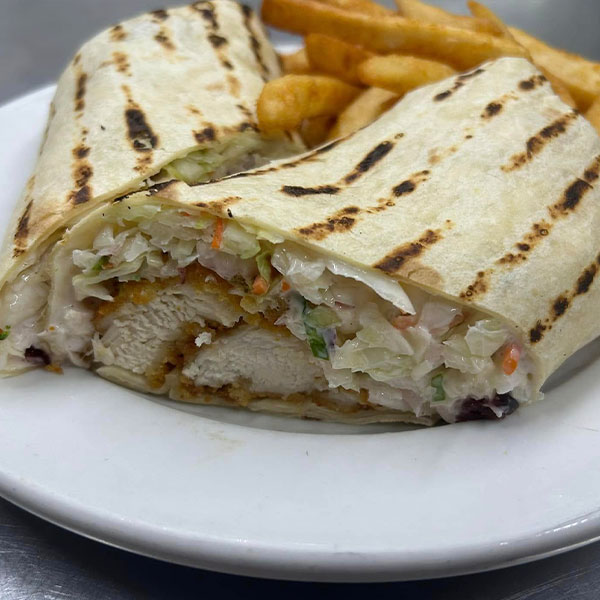 | House smoked turkey, applewood smoked bacon, lettuce, tomato, shredded Colby-jack cheese, and our house-made ranch dressing flat-grilled in a tortilla wrap |