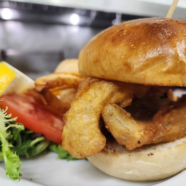 | Hand breaded in Cajun-bayou breading and prepared golden. Served on our artisan bun. | |