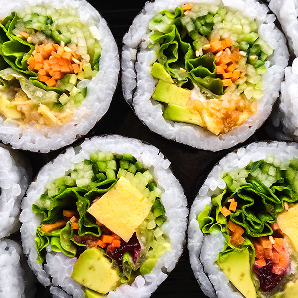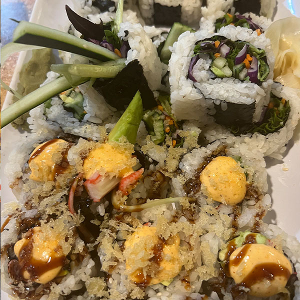 | Tuna, salmon, cucumber, scallions, and avocado |